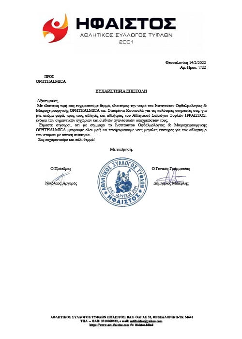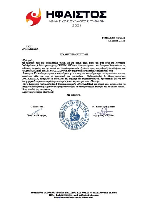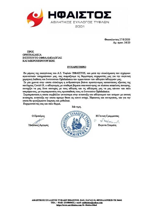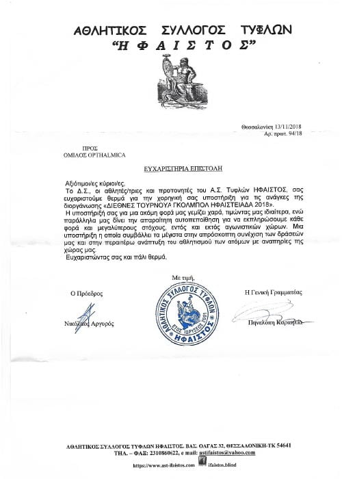 Υποστηρίζει εμπράκτως τους αθλητές της Παραολυμπιακής ομάδας με προβλήματα Όρασης (αθλητικός σύλλογος ΗΦΑΙΣΤΟΣ), κοινωνικά αδύναμες ομάδες καθώς και αντίστοιχες καλλιτεχνικές δράσεις συμπερίληψης (Mind’s Eye).