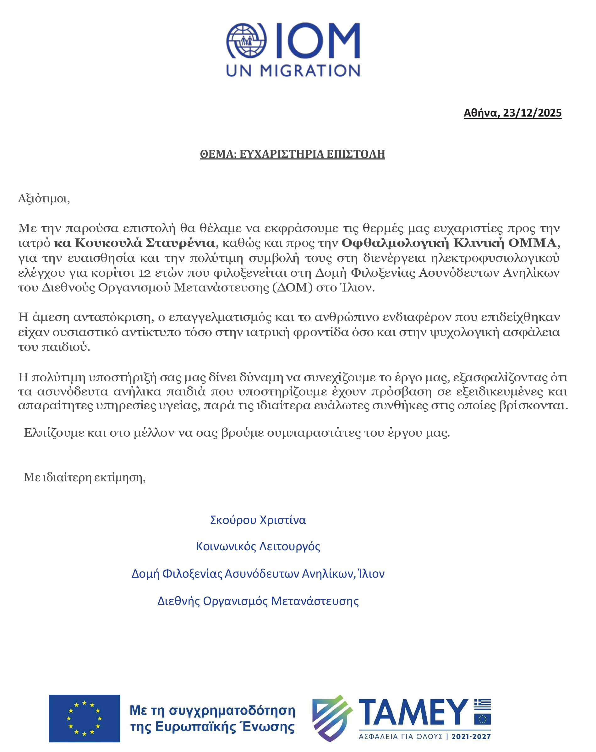 Ευχαριστήριες Επιστολές